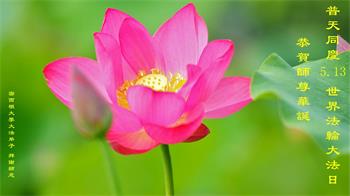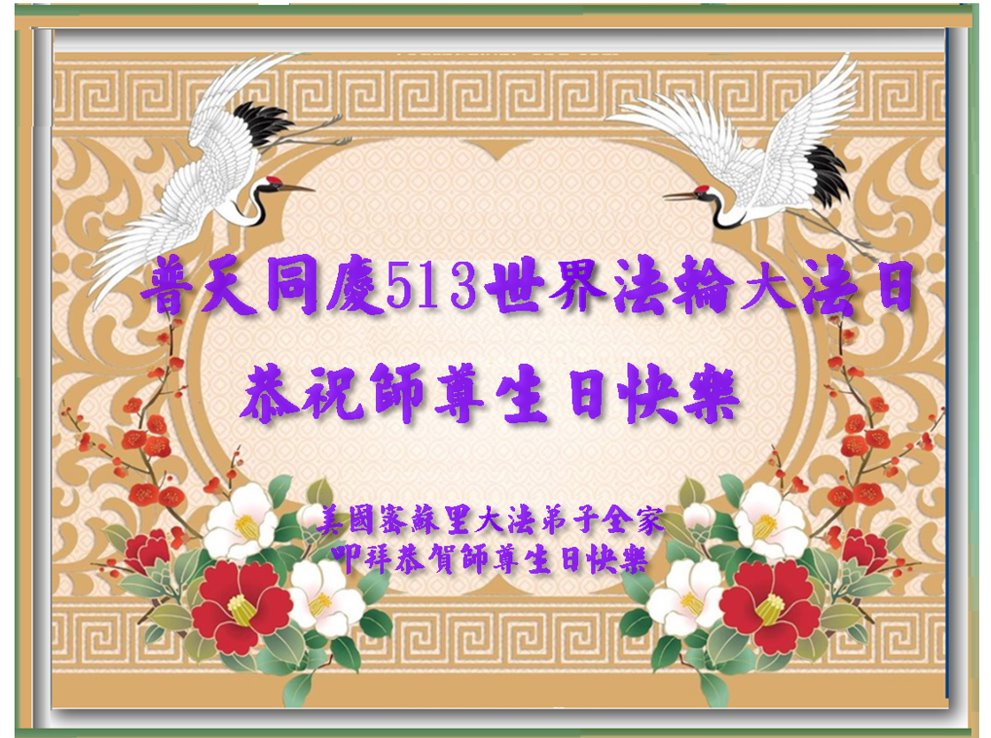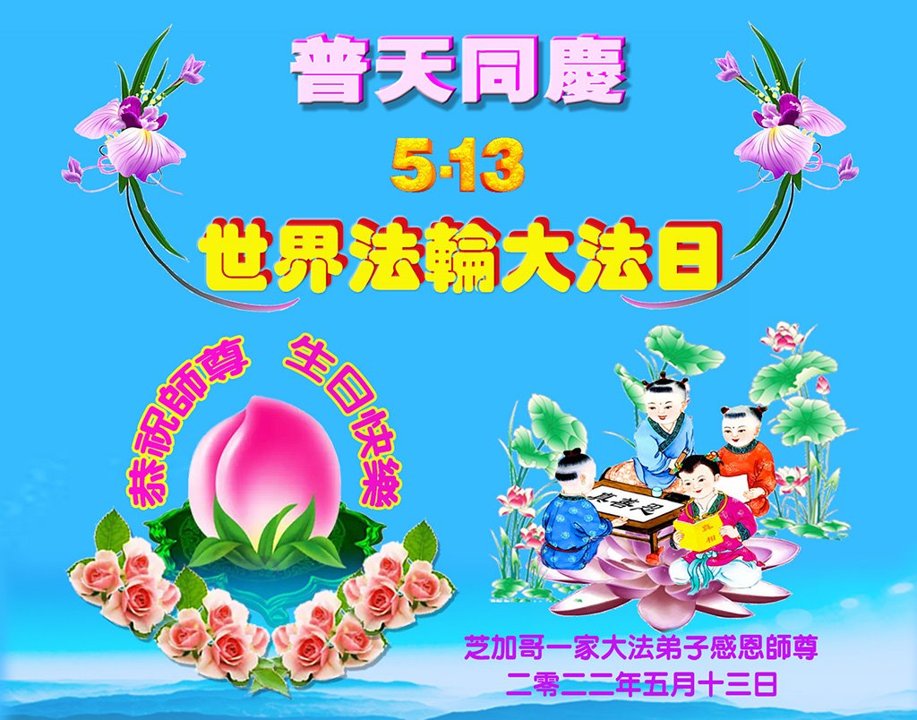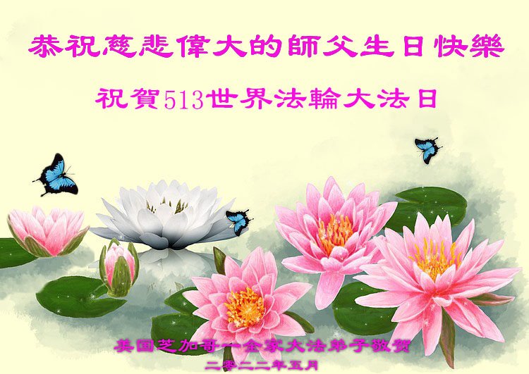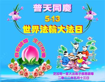 师父:您为了救度众生不知付出了多少心血,在修炼中我能够真正的体悟到师父的慈悲苦度。弟子只有精進再精進以报师恩! 芝加哥一大法弟子恭祝 美国芝加哥一全家大法弟子恭祝师尊生日快乐!祝贺513世界法轮大法日!