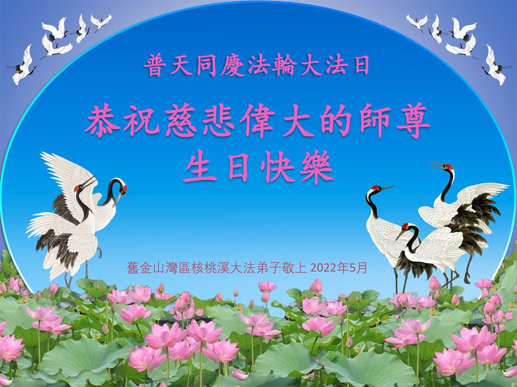 【明慧网二零二二年五月十三日】美国洛杉矶、旧金山、西雅图、拉斯维加斯、夏威夷、爱达荷州、华盛顿州、圣地亚哥、亚利桑那州、犹他州、波特兰等地大法弟子恭祝慈悲伟大的师尊生日快乐!庆祝法轮大法洪传三十周年! 北加州全体大法弟子恭祝师尊生日快乐!恭贺世界法轮大法日!