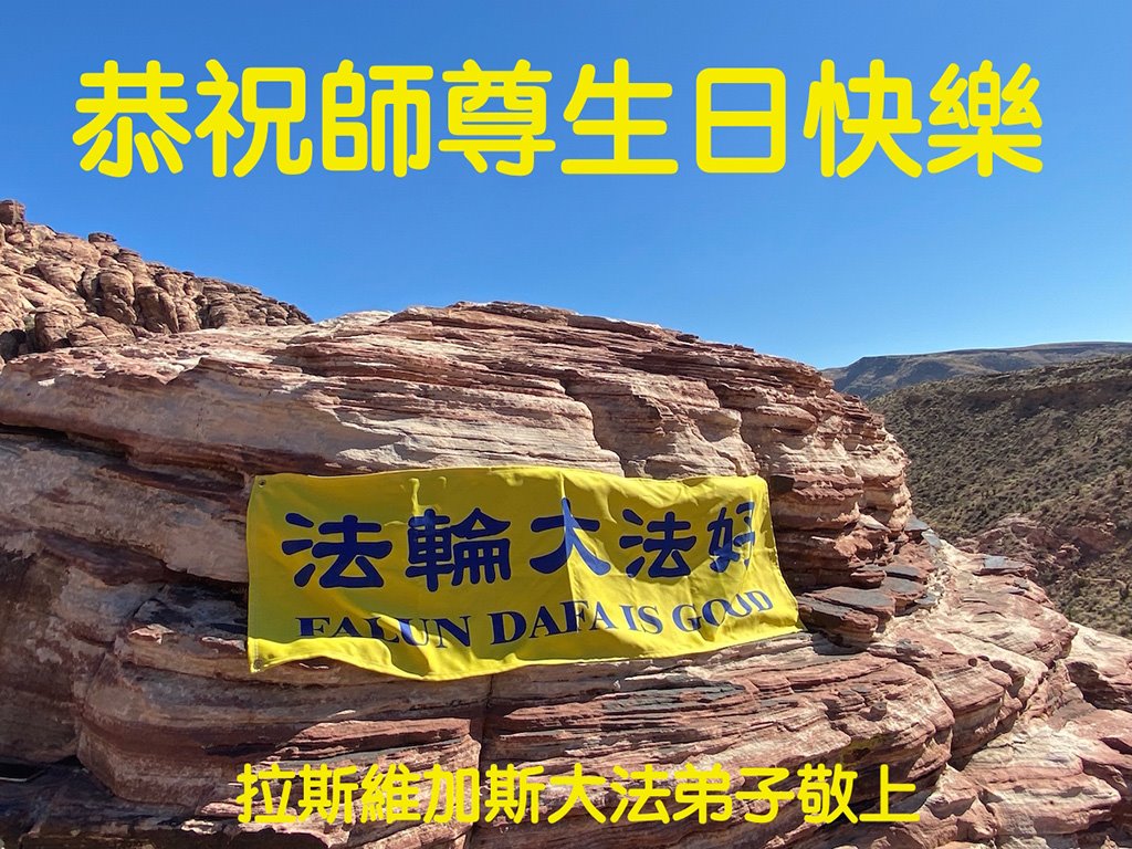 美国拉斯维加斯大法弟子恭祝师尊生日快乐!恭贺世界法轮大法日!