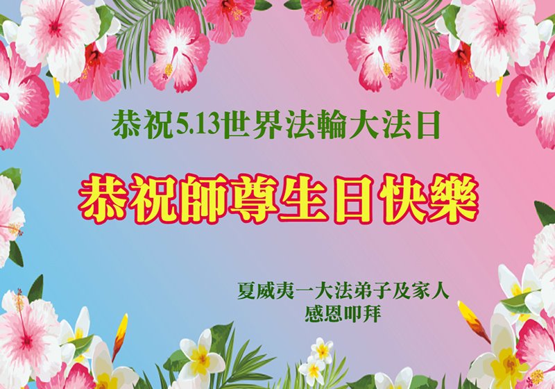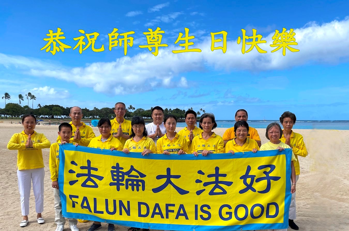 夏威夷可爱岛大法弟子恭祝慈悲伟大的师尊生日快乐!