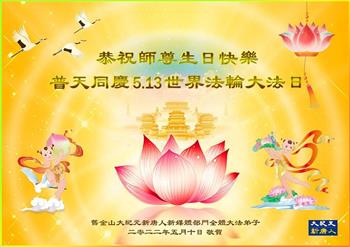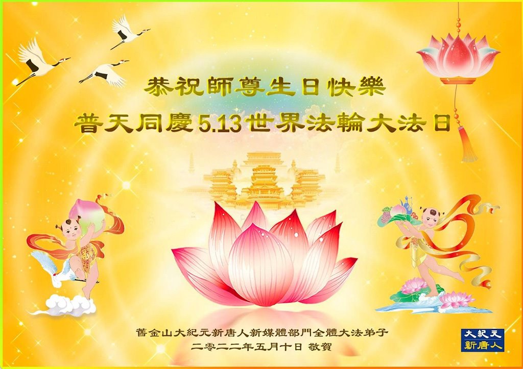 旧金山大.纪.元;新!唐!人:新媒体部门恭祝慈悲伟大的师尊生日快乐!普天同庆世界法轮大法日!