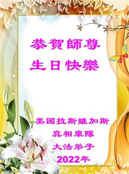 美国拉斯维加斯大法弟子恭祝慈悲伟大的师尊生日快乐!普天同庆世界法轮大法日!