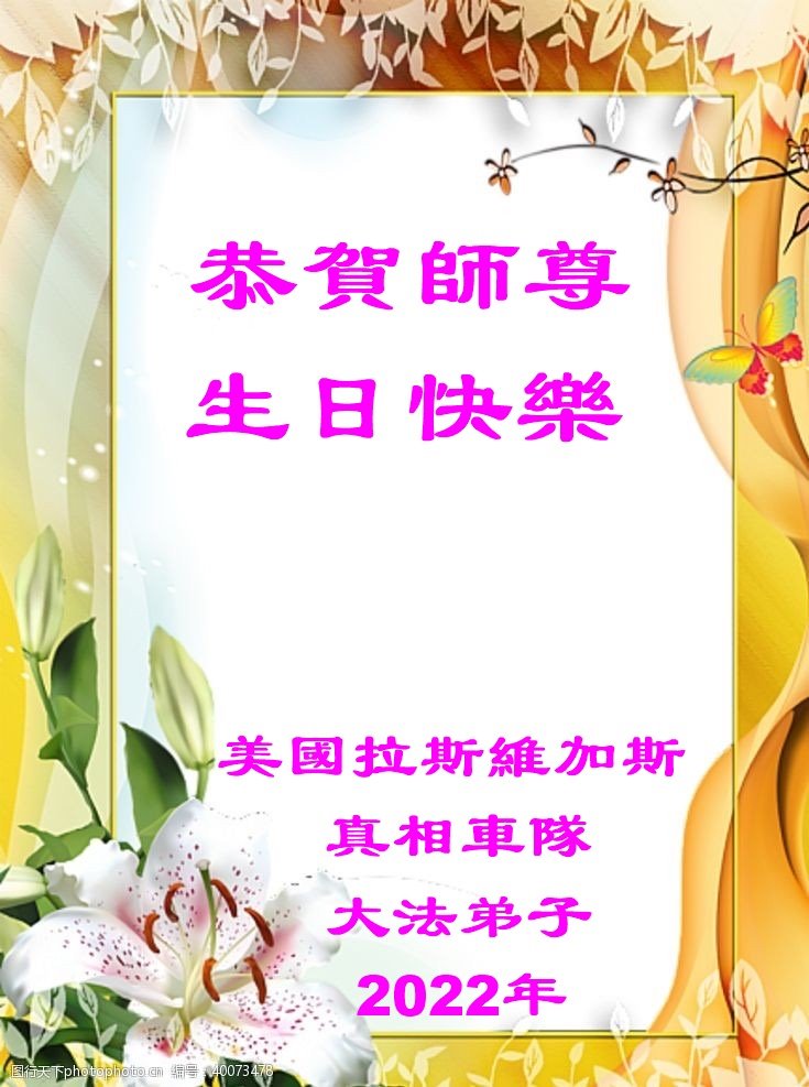 美国拉斯维加斯大法小弟子咖喱恭祝师尊生日快乐!
