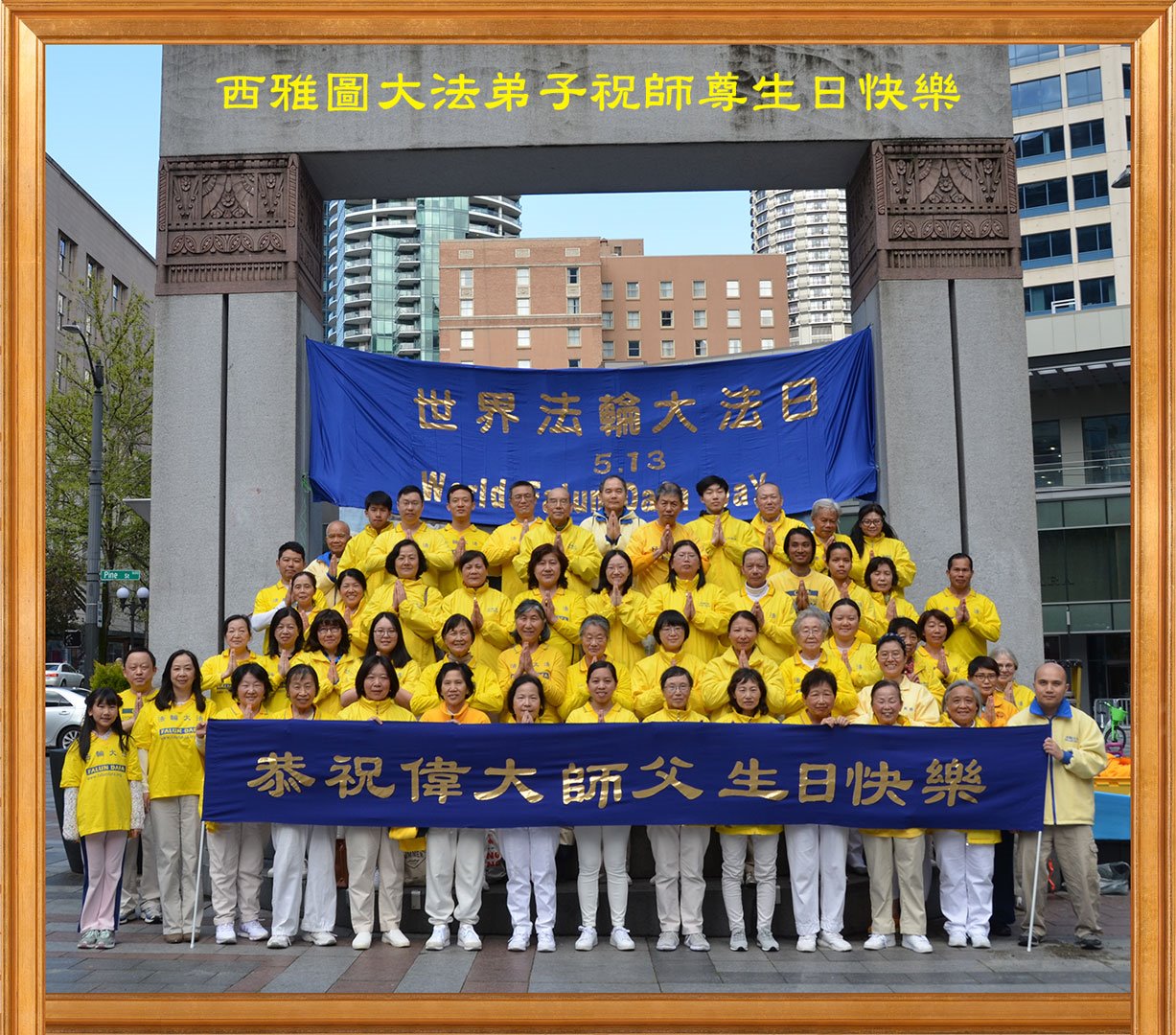 叩拜! 美国西雅图大法弟子恭祝师尊生日快乐!庆贺世界法轮大法日!
