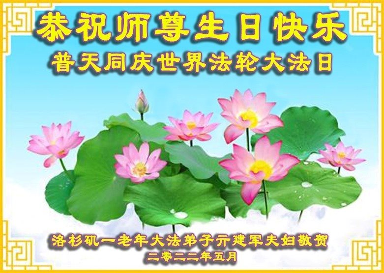恭祝慈悲伟大的师尊生日快乐! 普天同庆5·13世界法轮大法日! 洛杉矶一老年大法弟子亓建军夫妇敬贺 美国洛杉矶大法弟子恭祝慈悲伟大的师尊生日快乐!