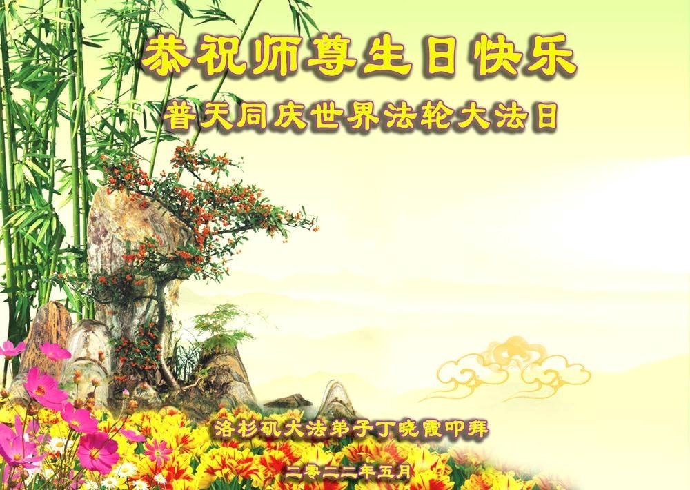 恭祝慈悲伟大的师尊生日快乐! 普天同庆5·13世界法轮大法日! 洛杉矶大法弟子丁晓霞叩拜 美国洛杉矶大法弟子恭祝慈悲伟大的师尊生日快乐!