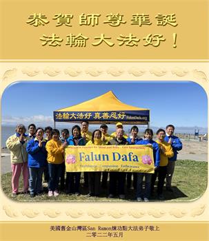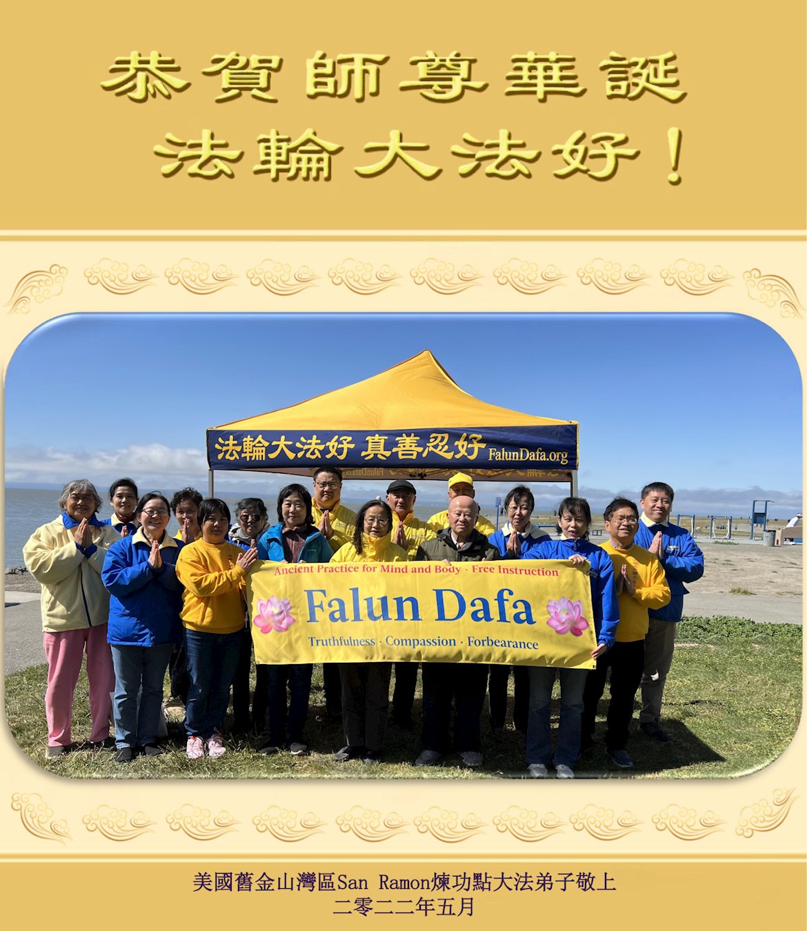 旧金山湾区核桃溪大法弟子恭祝慈悲伟大的师尊生日快乐!