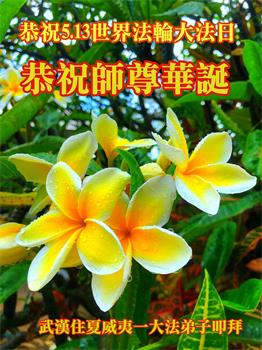 感恩叩拜! 湖北省武汉住夏威夷一大法弟子恭贺世界法轮大法日!恭祝师尊华诞快乐!