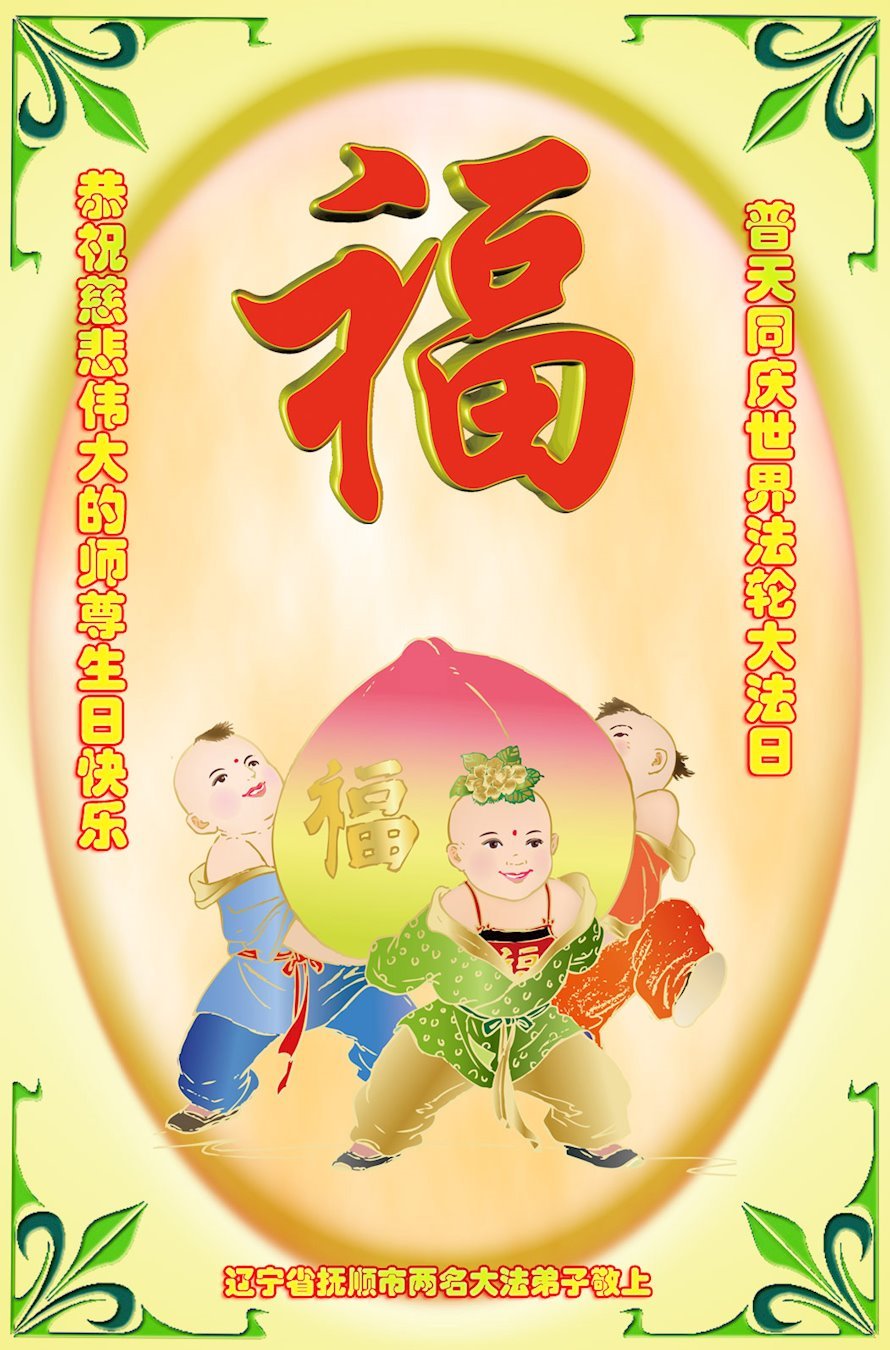 法轮大法好!真善忍好!救世人、救苍穹! 当下纷繁杂乱的世间乱象, 民不聊生更加看准、看清、看明白其根本的特性假恶斗、远离道德良知的底线最终直接的导向结果。 世人更加珍惜真、善、忍普世价值乃稀世珍宝!普天同庆同贺师尊华诞快乐!叩谢师尊三十年的救度之恩! 辽宁辽阳一大法弟子敬上 辽宁阜新大法弟子恭贺世界法轮大法日暨师尊华诞!