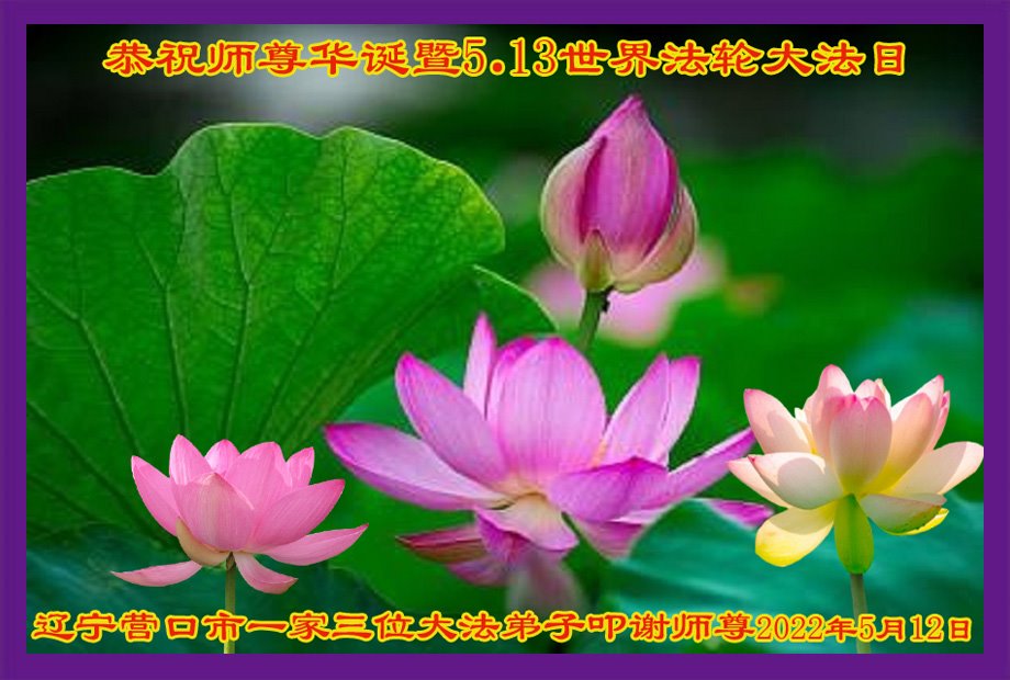 辽宁省营口市一家三名大法弟子恭祝师尊华诞暨5·13世界法轮大法日!