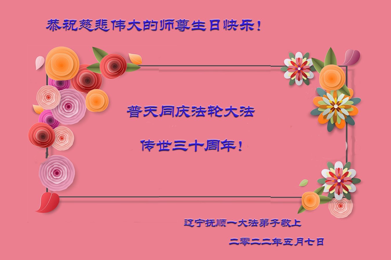 万分感恩师尊把我们一个个从败坏的宇宙中捞起,生命新生的喜悦无以言表! 弟子们谨记师父的洪大慈悲,不忘那些还没有得救的生命。 抓紧师父从新开创出的时间,做好三件事,不辱使命! 辽阳市全体大法弟子敬上 2022年5月12日 辽宁抚顺一大法弟子恭祝师尊生日快乐!