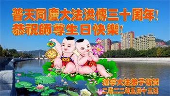 辽宁大法弟子恭祝师尊生日快乐!恭贺法轮大法洪传三十周年! 辽宁省大法弟子恭祝师尊生日快乐!