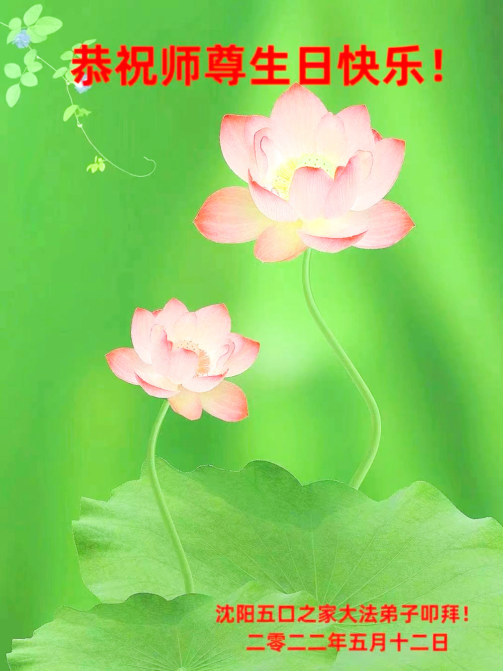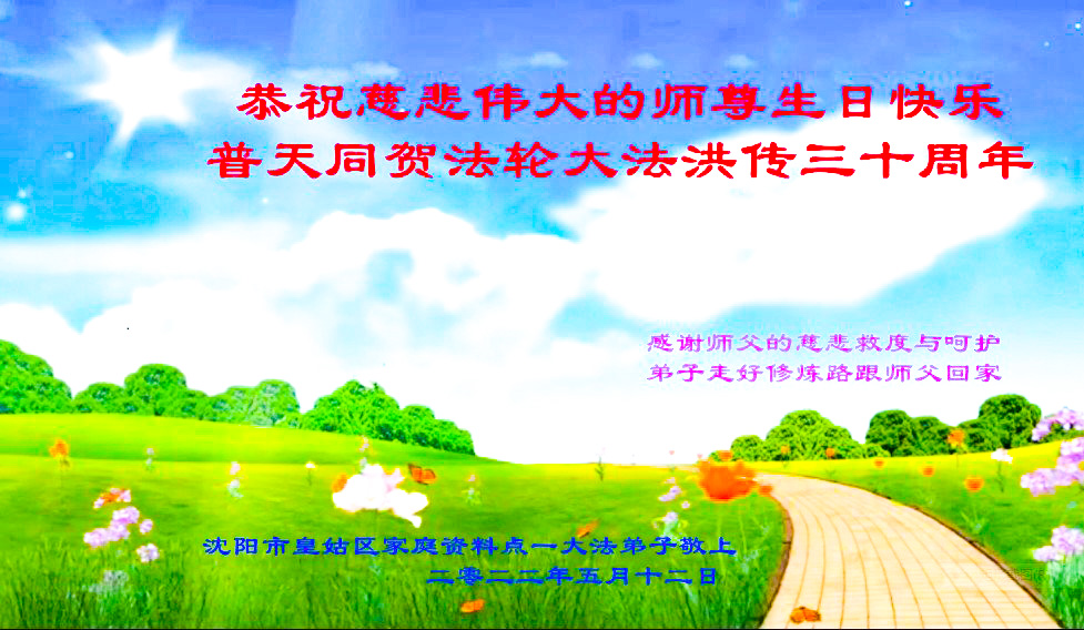 【明慧网二零二二年五月十四日】 辽宁省沈阳市皇姑区家庭资料点一大法弟子恭祝慈悲伟大的师父生日快乐!