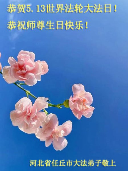 【明慧网二零二二年五月十四日】 河北省沧州市任丘市大法弟子恭贺法轮大法日!恭祝师尊生日快乐!