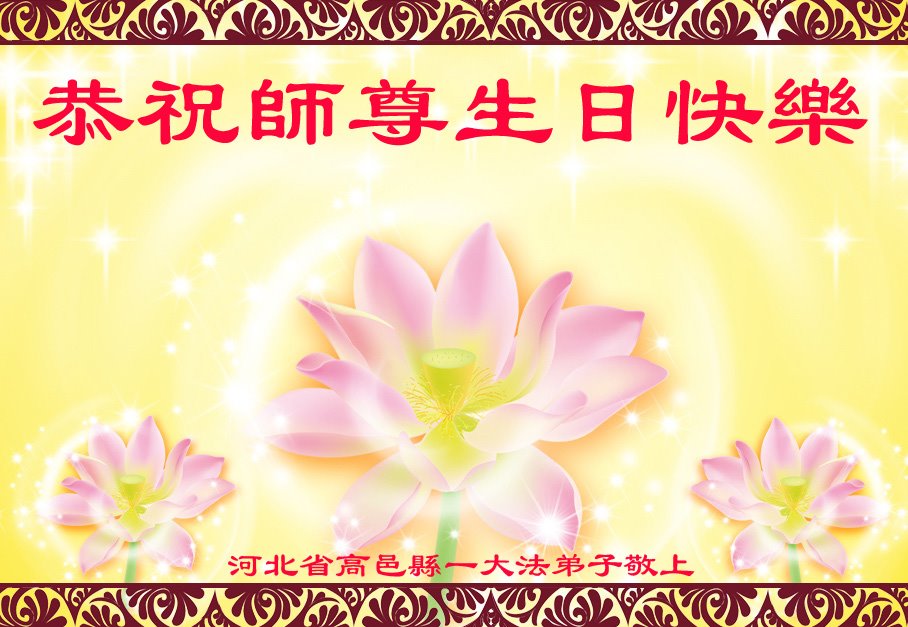 【明慧网二零二二年五月十四日】 河北省石家庄市高邑县一大法弟子恭祝师尊生日快乐!谢谢师尊的慈悲苦度!