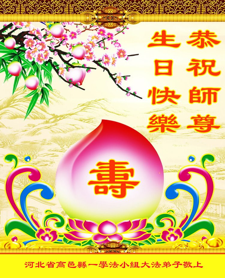 在这普天同庆的日子里,恭贺法轮大法洪传三十周年!恭贺世界法轮大法日暨师尊七十一华诞! 在师尊的慈悲保护下,弟子们走到了今天。师尊为弟子的辛苦付出太多太多,弟子无以言表,只有抓紧时间,修好自己,努力精進、再精進,做好三件事,不辱使命,兑现来世的誓约! 长安区两人学法小组大法弟子跪拜 二零二二年五月十一日 河北省石家庄市高邑县一学法小组大法弟子恭祝师尊生日快乐!
