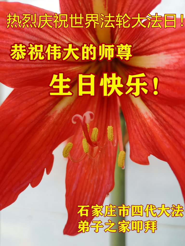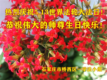 石家庄大法弟子恭祝慈悲伟大的师尊生日快乐!恭贺世界法轮大法日! 河北省石家庄四代大法弟子之家热烈庆贺5.13世界法轮大法日!恭祝师尊生日快乐!