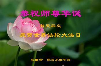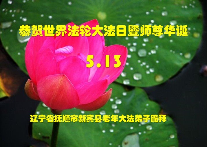 恭祝师尊华诞!普天同庆世界法轮大法日! 辽宁省抚顺市一学法小组等十六人敬上 辽宁省铁岭一女大法弟子恭祝慈悲伟大的师尊生日快乐!恩师您辛苦了!普天同庆5.13法轮大法日!