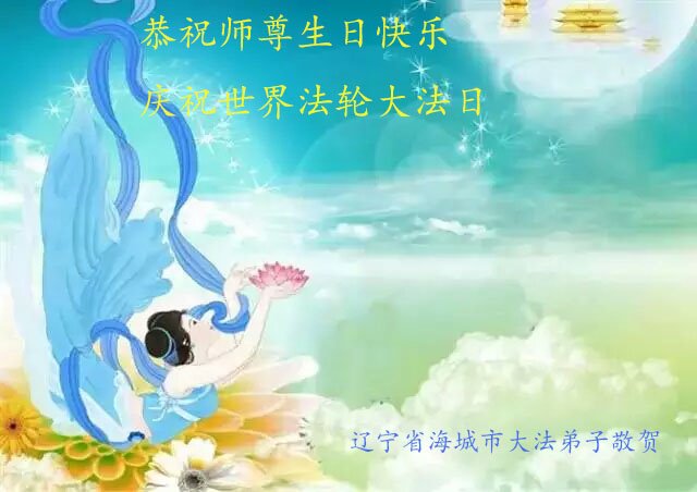 辽宁省鞍山市海城市大法弟子恭祝师尊生日快乐!庆祝世界法轮大法日!