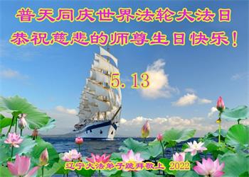 感谢师父慈悲苦度!弟子叩谢师恩! 辽宁大法弟子普天同庆世界法轮大法日!恭祝慈悲伟大的师尊生日快乐!