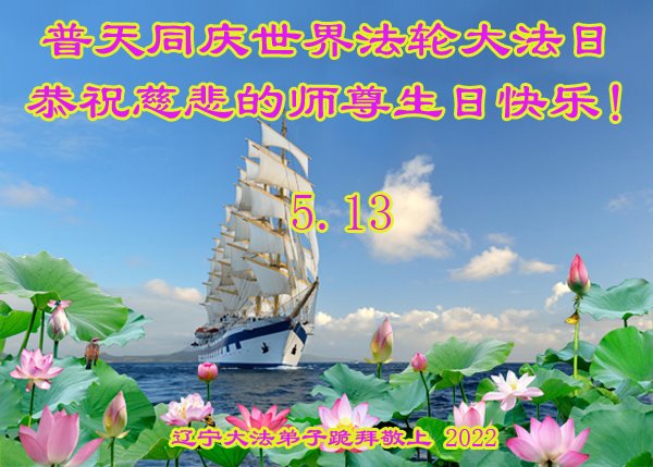 在这普天同庆五·一三世界法轮大法日暨师尊华诞之际,我们学法小组全体大法弟子恭祝慈悲伟大的师尊生日快乐! 师父您好!师父您辛苦了! 弟子想念您!时刻盼师归来! 弟子感恩师尊!感恩大法! 我们在今后一定要修好自己,多学法,学好法。按着师父的要求去做人,做一个真正的修炼人。讲真相救世人,兑现誓约,完成使命,走好师尊给我们安排的修炼路,圆满随师回天国家园! 辽宁一学法小组全体大法弟子双手合十 叩拜 二零二二年五月十日 辽宁省营口市鲅鱼圈区夫妻大法弟子恭祝师尊生日快乐!普天同庆5·13法轮大法日!