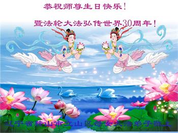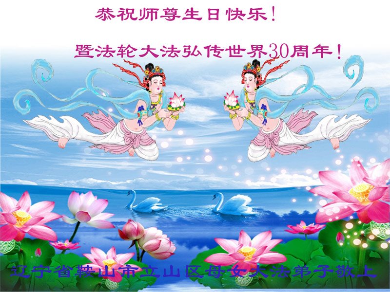 辽宁省鞍山市立山区大法弟子恭祝师尊生日快乐!庆祝法轮大法洪传世界三十周年!