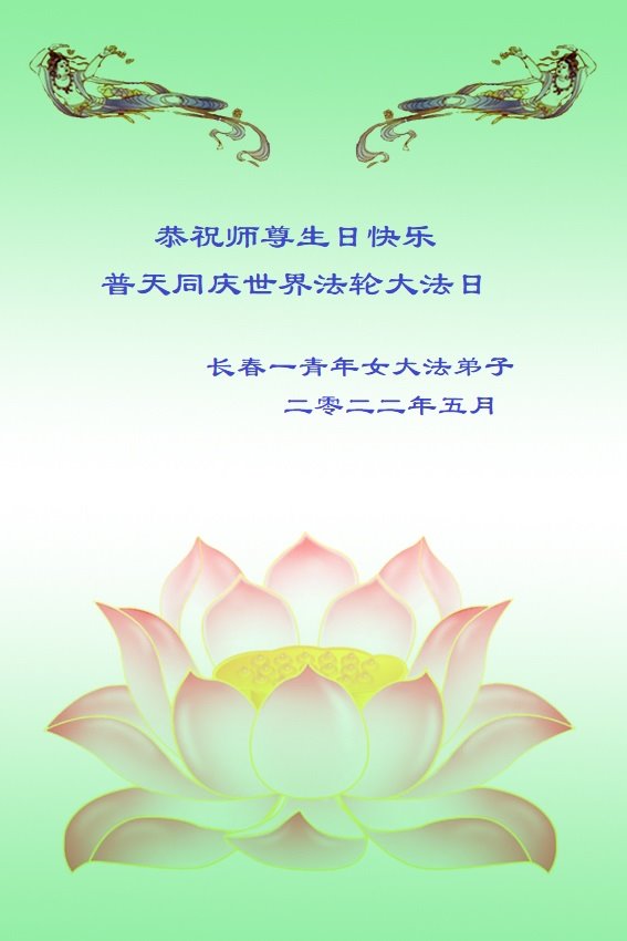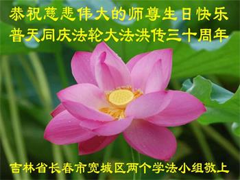 长春市宽城区两个学法小组大法弟子恭祝慈悲伟大的师尊生日快乐!普天同庆法轮大法洪传三十周年! 吉林省长春市一名女大法弟子恭祝慈悲伟大的师尊生日快乐!