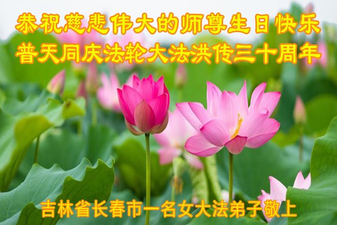 吉林省长春一大法弟子恭祝师尊生日快乐!普天同庆世界法轮大法日!