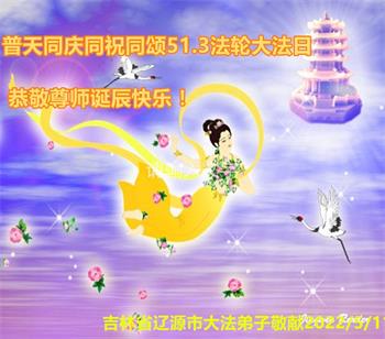 延吉市一朝鲜族大法弟子恭祝慈悲伟大师父生日快乐!祝贺法轮大法洪传三十周年! 吉林省通化市柳河县大法弟子恭祝师尊生日快乐!