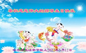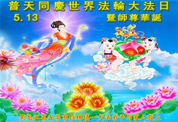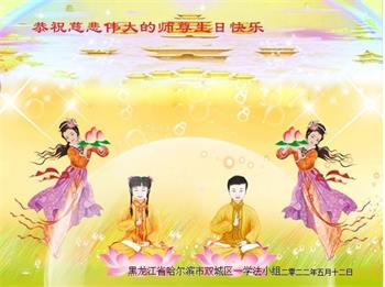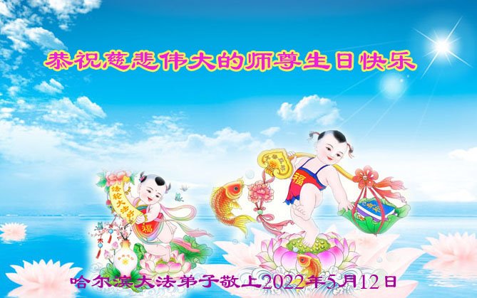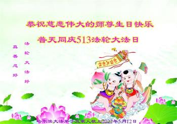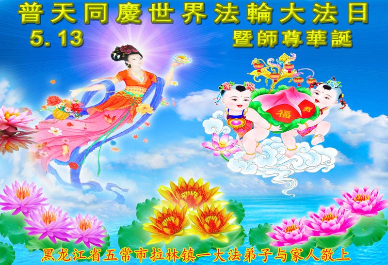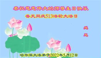 黑龙江省哈尔滨一大法弟子恭贺师尊华诞及世界法轮大法日!