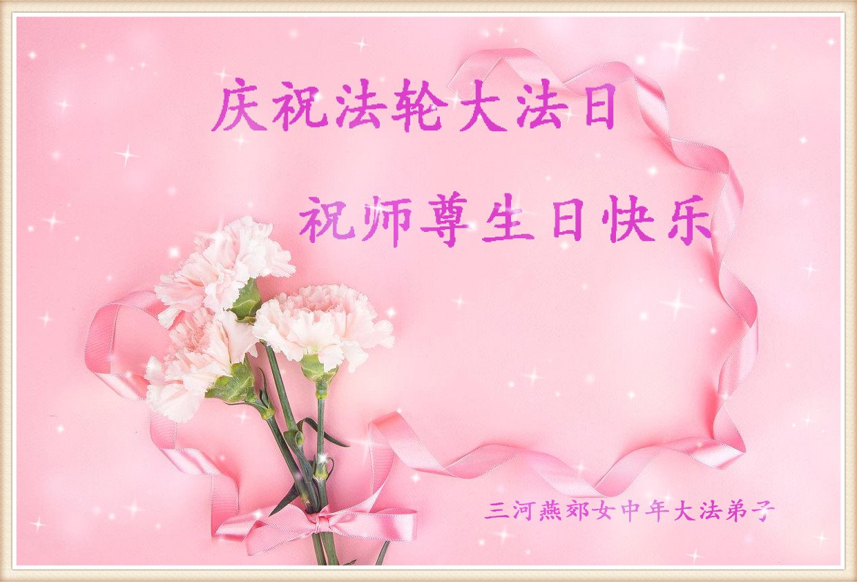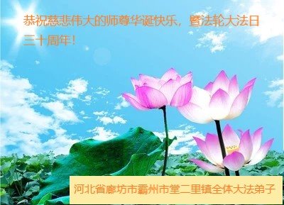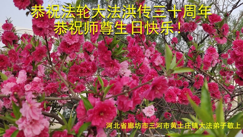 河北省廊坊市三河市黄土庄镇大法弟子恭祝师尊生日快乐!恭贺世界法轮大法日!
