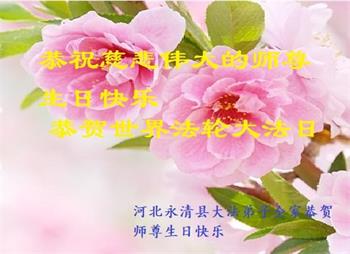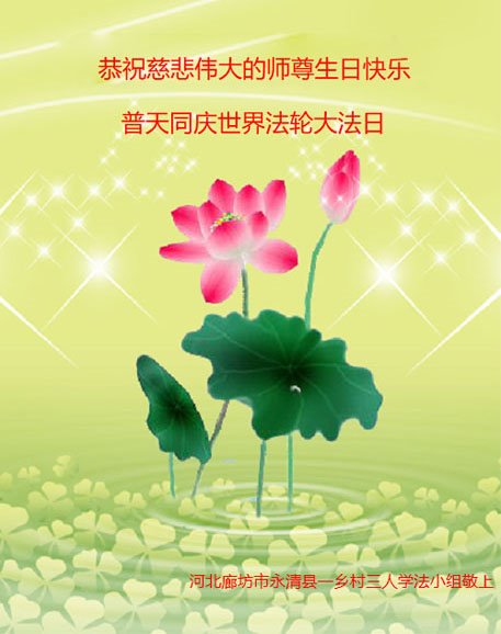 河北廊坊永清三名大法弟子恭祝师尊生日快乐!恭贺世界法轮大法日!