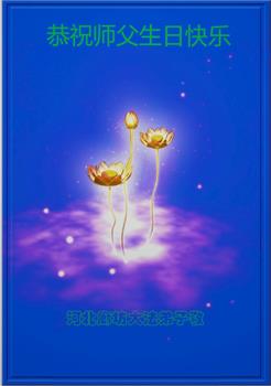师父您好!我们时刻牢记您的教导,不辜负您的巨大付出,学好法多救人,修好自己,做一个合格的大法弟子,跟师父回家。 河北省廊坊市霸州市堂二里镇全体大法弟子 河北省廊坊市三河市一老年大法弟子恭祝师尊生日快乐!