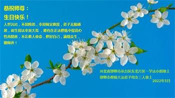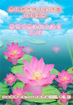 【明慧网二零二二年五月十四日】 河北省承德市大石庙一大法弟子恭祝师尊生日快乐!恭贺世界法轮大法日!