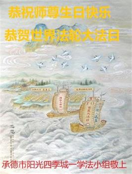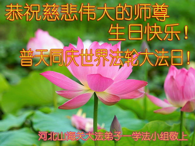 河北省山海关一学法小组大法弟子恭贺世界法轮大法日!恭祝慈悲伟大的师尊生日快乐!