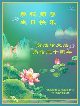 恭祝法轮大法洪传三十周年!师父您辛苦了!弟子们很想念您。 河北衡水市一大法弟子恭贺世界法轮大法日!祝师尊生日快乐!