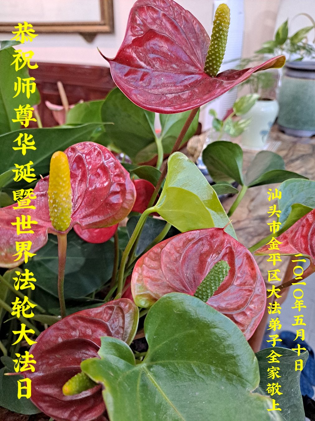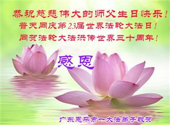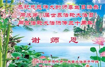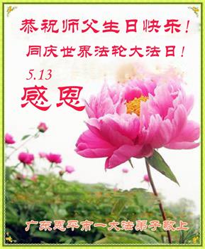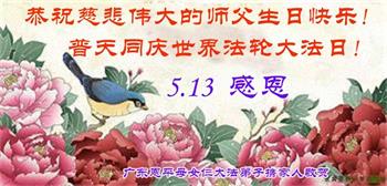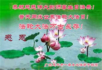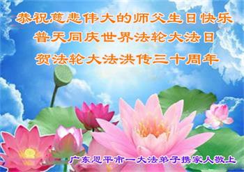 广东惠州大法弟子恭贺世界法轮大法日 广东省揭阳市普宁市大法弟子一家恭祝师尊生日快乐!