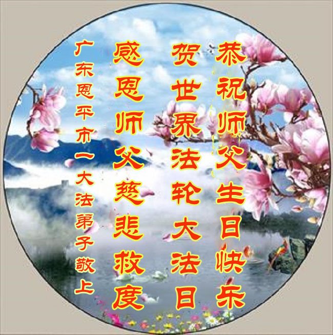 恭祝师父生日快乐! 贺世界法轮大法日! 感恩师父慈悲救度! 广东恩平市一大法弟子敬上 广东省江门市恩平市一大法弟子恭祝师师生日快乐!