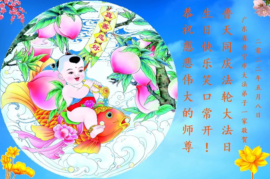 【明慧网二零二二年五月十四日】 广东省河源市紫金县大法弟子恭祝师尊生日快乐!