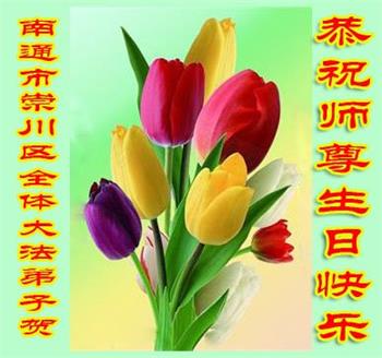 江苏省南通市崇川区全体大法弟子恭祝慈悲伟大的师尊生日快乐!