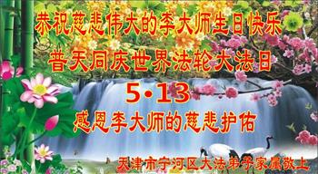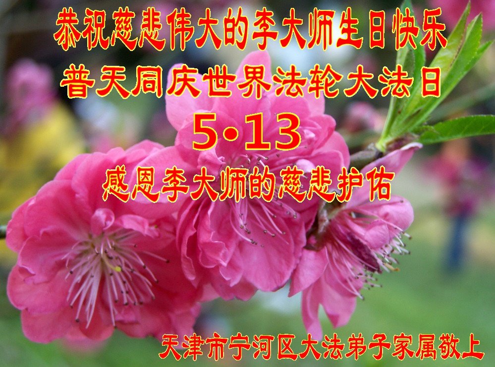 天津市宁河区大法弟子家属恭祝李大师生日快乐!普天同庆世界法轮大法日!