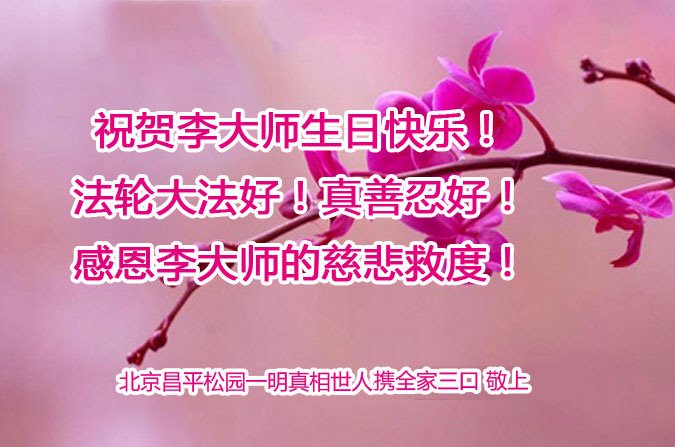 北京市怀柔区九渡河镇一明真相世人代表全家三人祝李大师生日快乐!