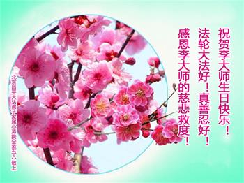 李大师您好!我虽然不是您的弟子,可是我也要按照大法的标准做。我们诚心敬念法轮大法好,真、善、忍好,都得到了福报。您一次又一次慈悲的保佑我们全家,受益匪浅,谢谢大法师父救命之恩,祝李大师生日快乐!您辛苦了! 今年三月份,我的丈夫因重病住院,术后高烧不止,医生、主治医师都束手无策,主治医师给我们用的都是最好的药,四十多天下来,钱没少花(这家医院的最好的药都不好使我就到另一家去买顶级好药,可还是不管用),就是不好,还发烧,我整天以泪洗面,丈夫是我们家的顶梁柱,他垮了我这个家就散了。我无能力抚养孩子及高额的补课费,也无能力赡养婆婆了,医保能报的药治疗不了我丈夫的病,此次住院全是自费。 丈夫疼痛难忍的时候就说:“媳妇,我真的不想活了,我实在是遭不起这个罪了,我承受不了了,不断的叮嘱我,你将来怎么……”我也哭他也哭,我和丈夫都绝望了。 冥冥之中有神护,丈夫又有救了。我知道是大法师父慈悲派大法弟子来告诉丈夫诚心敬念法轮大法好,真善忍好九字真言,真心诚意敬念就能保命保平安。我明白大法真相后,一直不断的念诵九字真言,神迹不断,大法师父慈悲帮我两个月顺利考过驾照;婆婆念诵九字真言她的胆结石好了,已故的公爹晚上再也不敢来闹婆婆了;女儿不断的念诵九字真言健康快乐的成长。在此就不多举了。这次丈夫彻底的听明白了真相,在心里不断的念,后来又大声念,他整个人变了,几天后,丈夫血项也不高了,各项指标都正常了,我和丈夫感动的哭了连医生都感动地哭了。激动的心情无以言表,我在心里跟大法师父说:“我们现在都隔离在医院,等我丈夫出院,我一定到大法弟子家给您磕三个响头,在给您敬上几种高级水果,感谢大法师父救命之恩。” 昨天,听大法弟子说明天是师父生日,我兑现了我的承诺,我代表全家恭祝师父生日快乐! 北京昌平松园一明真相世人携全家三口恭祝师父生日快乐!恭贺法轮大法日!法轮大法好!真善忍好!感恩李大师的慈悲救度!