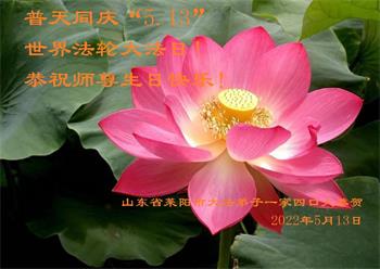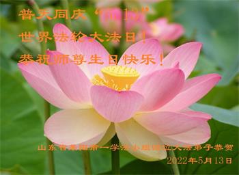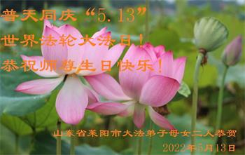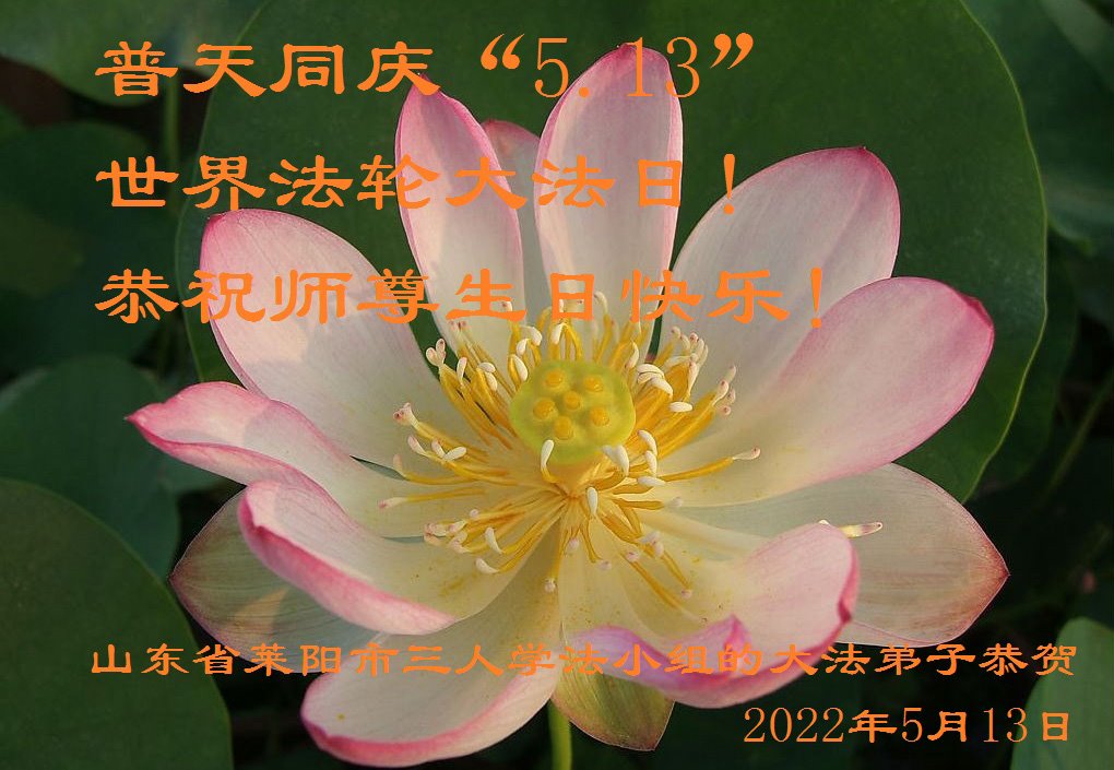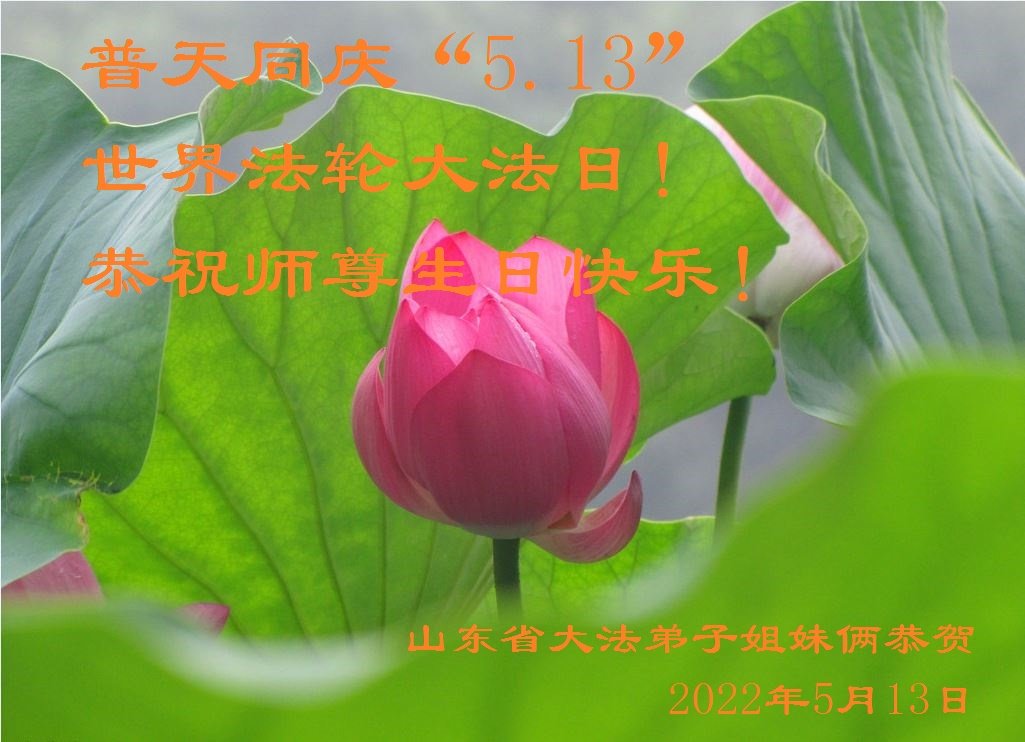 【明慧网二零二二年五月十四日】 山东省大法弟子姐妹两人恭祝慈悲伟大的师尊生日快乐!恭贺世界法轮大法日!