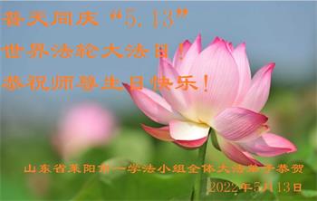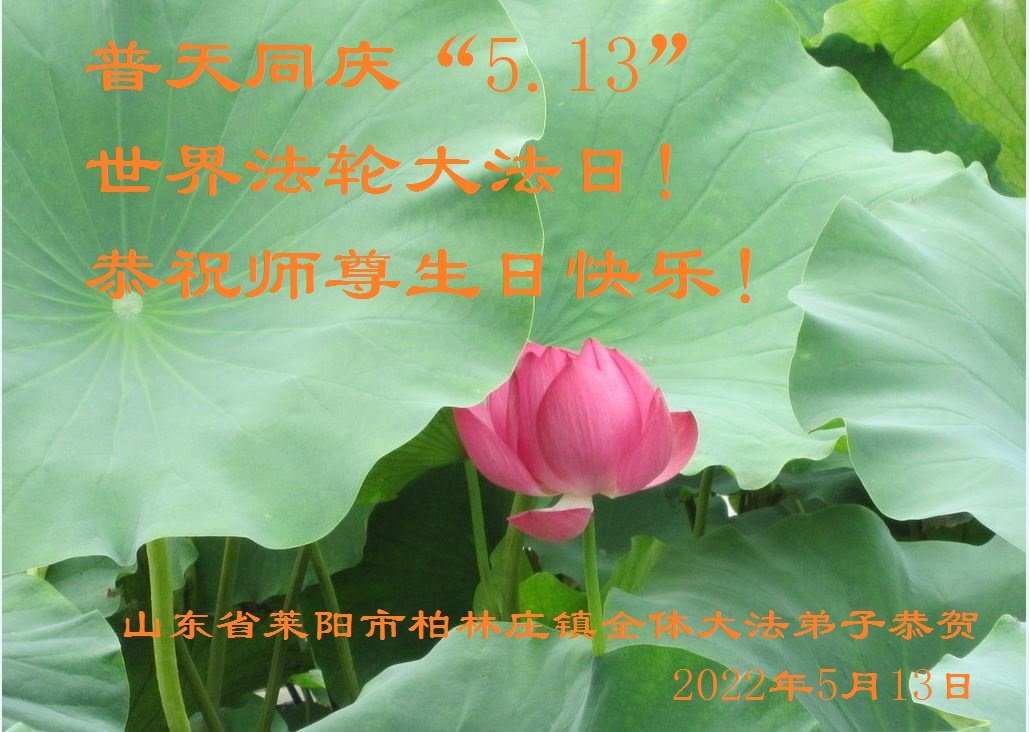 山东省莱阳市柏林庄镇全体大法弟子恭祝慈悲伟大的师尊生日快乐!恭贺世界法轮大法日!同祝同颂法轮大法洪传世界三十周年! 山东省烟台市莱阳市一学法小组四位大法弟子恭祝慈悲伟大的师尊生日快乐!恭贺世界法轮大法日!