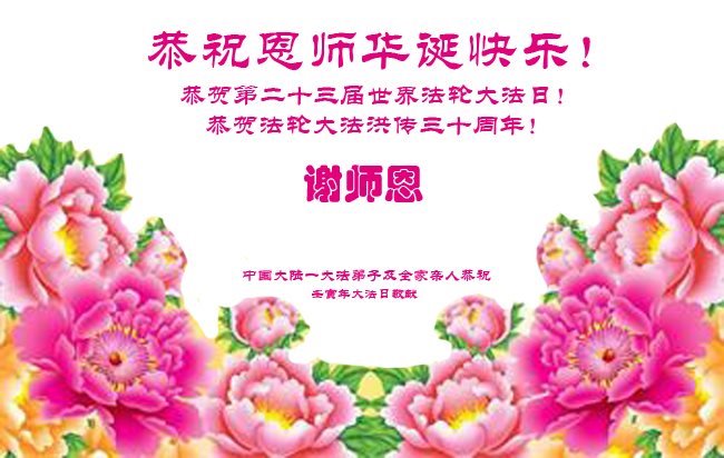 中国大陆一大法弟子及全家亲人恭祝师尊生日快乐!