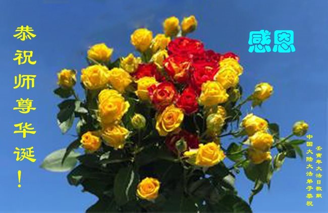 师尊好!师尊辛苦了! 恭祝师尊生日快乐!谢谢师尊慈悲救度! 合十 大陆大法弟子敬上 中国大陆大法弟子恭祝师尊生日快乐!
