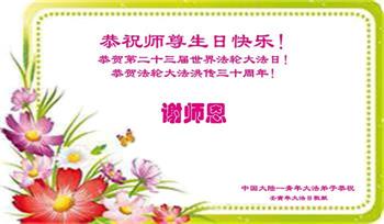 大陆大法弟子恭祝师父生日快乐!普天同庆世界法轮大法日!