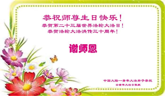 中国大陆一青年大法弟子恭祝师尊生日快乐!