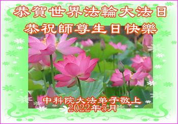 【明慧网二零二二年五月十四日】 中国大陆华侨城大法弟子全家恭祝师尊华诞恭贺世界法轮大法日!